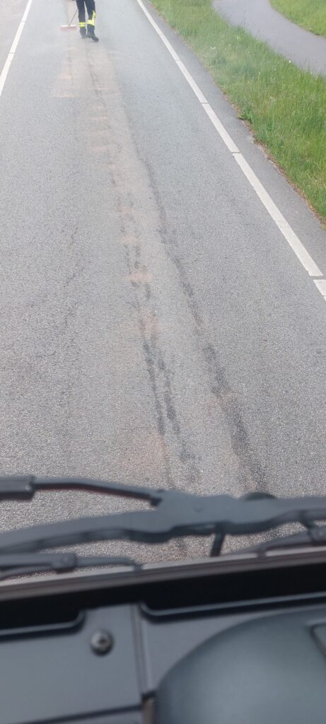 Diese Alarmierung führte uns zu einer Kühlflüssigkeitsspur in die Ortschaft Schenkendorf. Mittels Bindemittel wurden die Gefahrenstellen abgebunden.